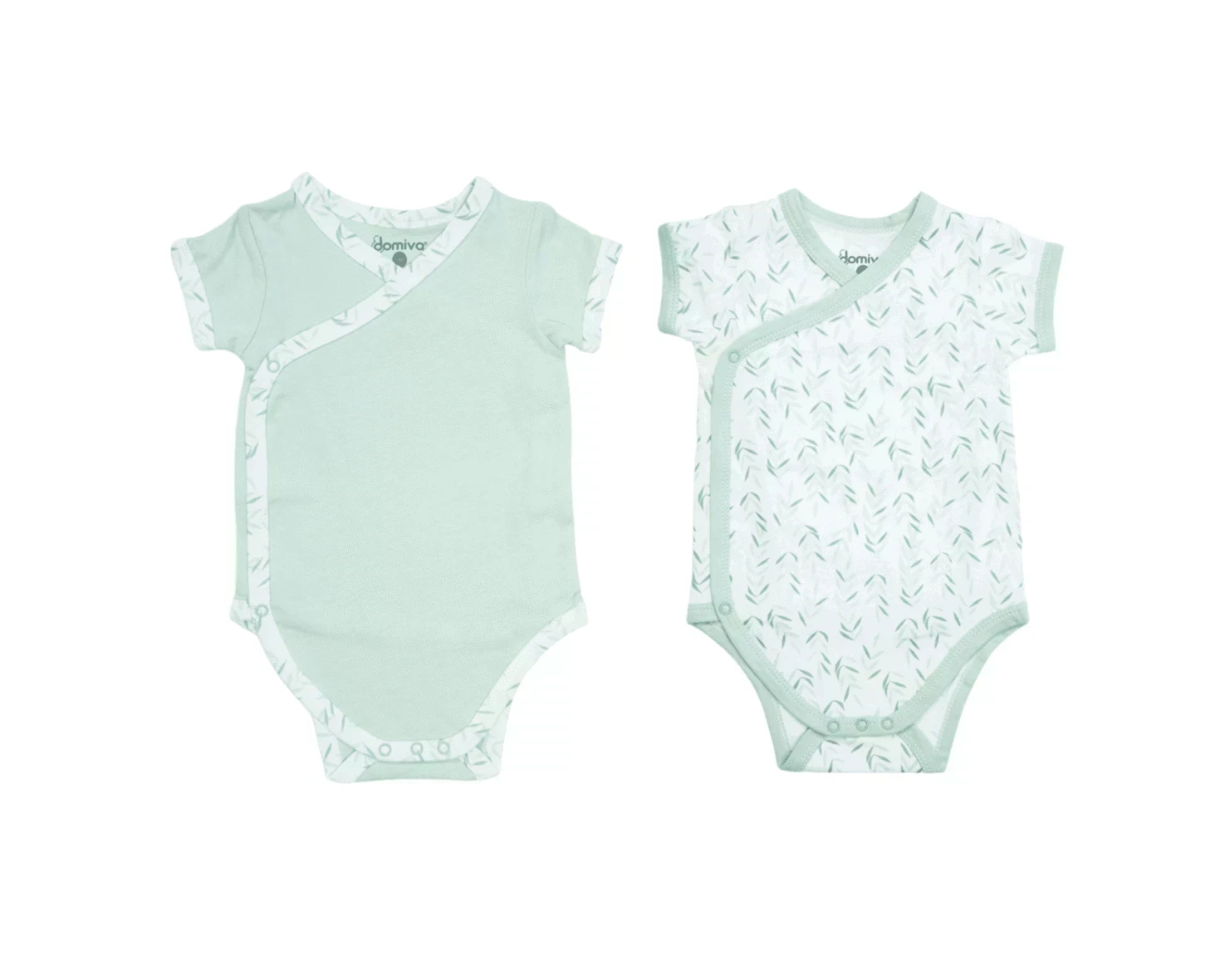 Ces 2 bodies à manches courtes Filou de Domiva disposent de boutons-pression sur toute la hauteur et sur l’entre-jambes, pour habiller facilement bébé et changer sa couche sans le dévêtir totalement.