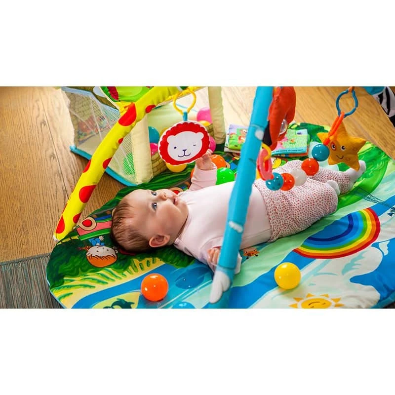 DÉCOUVREZ NOTRE TAPIS DE JEU LIONELO IMKE PLUS Agréable au toucher et confortable, la base du tapis de jeu Lionelo Imke Plus est confectionné à partir d’un garnissage épais et isolant souple qui protège votre enfant du froid du sol.Caractéristiques du tapis de jeu Lionelo Imke PlusGrand espace de jeuLes formes et les couleurs stimulent le développement des sens de l’enfantGarnissage épais et isolant soupleMaison fonctionnelle dans laquelle les balles peuvent être rangées2 arches amovibles3 jouets suspendus, livret, corde avec hochets, anneau de dentitions30 balles colorées avec petite maison pour les rangerNormes de sécurité strictes EN 71Dimensions du tapis de