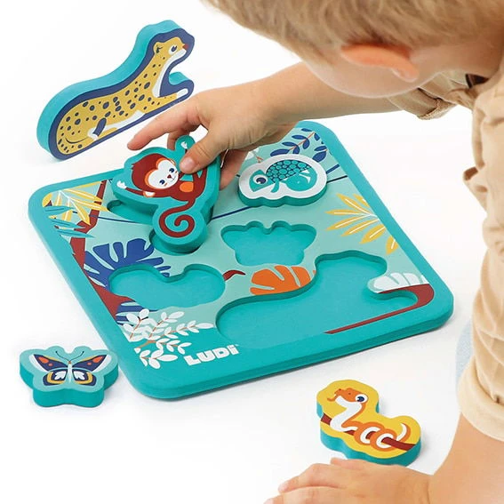 Ludi Puzzle ludique en mousseMon Premier Puzzle ! 🐾🧩 Plongez dans l’aventure de ce puzzle ludique qui éveille la curiosité dès le plus jeune âge ! Il stimule l’imagination et développe les compétences sensorielles Un jeu d’encastrement adorable avec 1 plateau et 5 animaux de la jungle en mousse légère. Parfait pour apprendre les formes et les noms des animaux tout en s’amusant ! Les pièces épaisses sont faciles à manipuler pour les petites mains 👶💡 Et devinez quoi ? Il est waterproof, donc parfait pour le bain ! 🛁 Une aventure ludique et éducative pour les petits explorateurs !