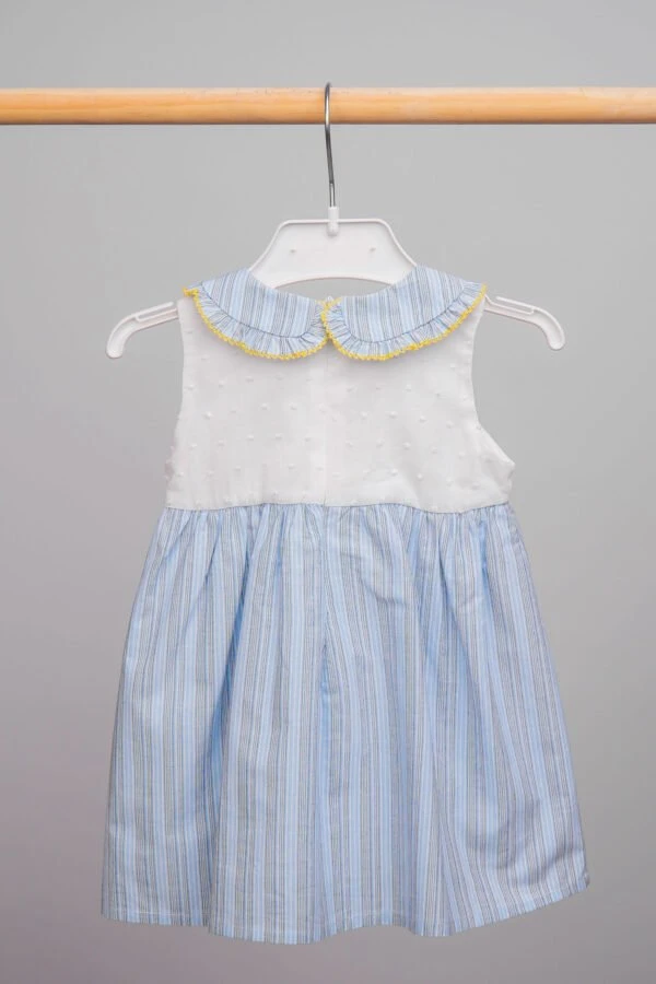 Robe bébé fille bleu avec col claudine volanté