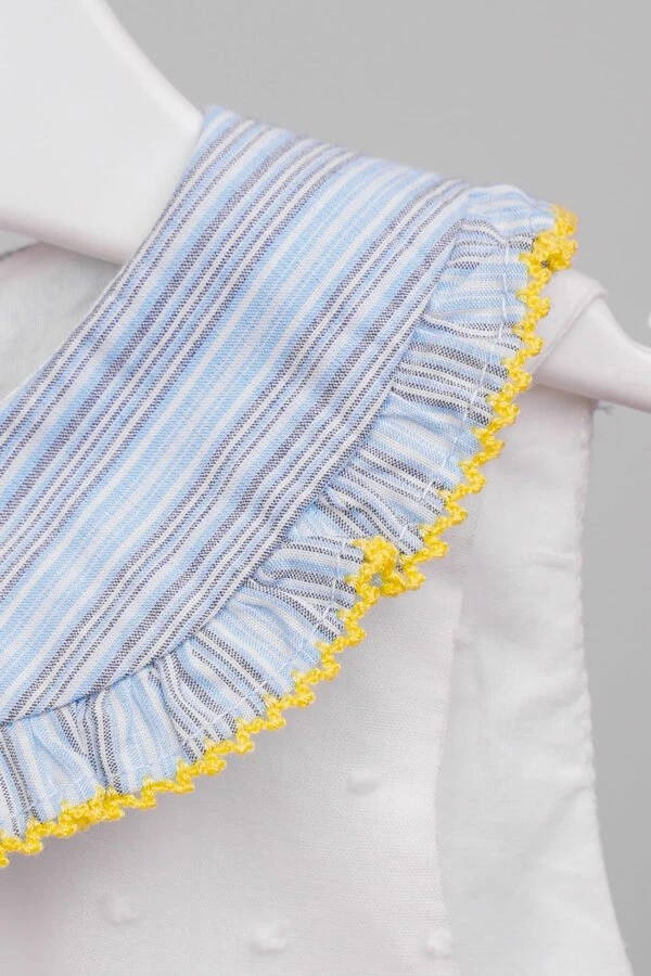 Soyez le premier à laisser votre avis sur “Robe bébé fille bleu avec col claudine volanté”