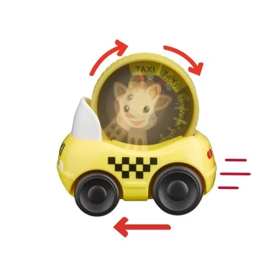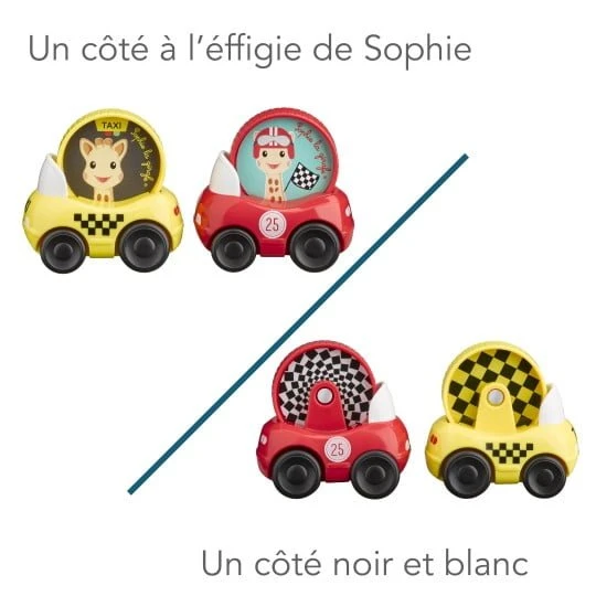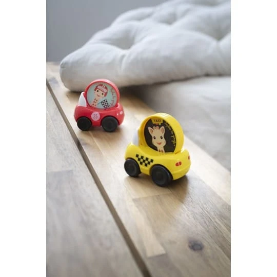 Sophie La Girafe Set De 2 Véhicules 2 voitures à roulettes à l’effigie de Sophie la girafe pour les tout-petits :La voiture de courseLe taxi new-yorkais Il suffit de faire avancer la voiture pour voir la roue où se trouve Sophie la girafe tournoyer sur elle-même. Son petit format et sa forme ronde permettent une préhension facile par les petites mains. Age : 10 mois + Dimensions: Dim. emballage : h 125 x l 165 x p 65 mm Dim. produit : h 68 x l 68 x p 45 mm Ref : 230819 Sophie La Girafe Set De 2 VéhiculesLa marque : Sophie la girafe Le premier jouet