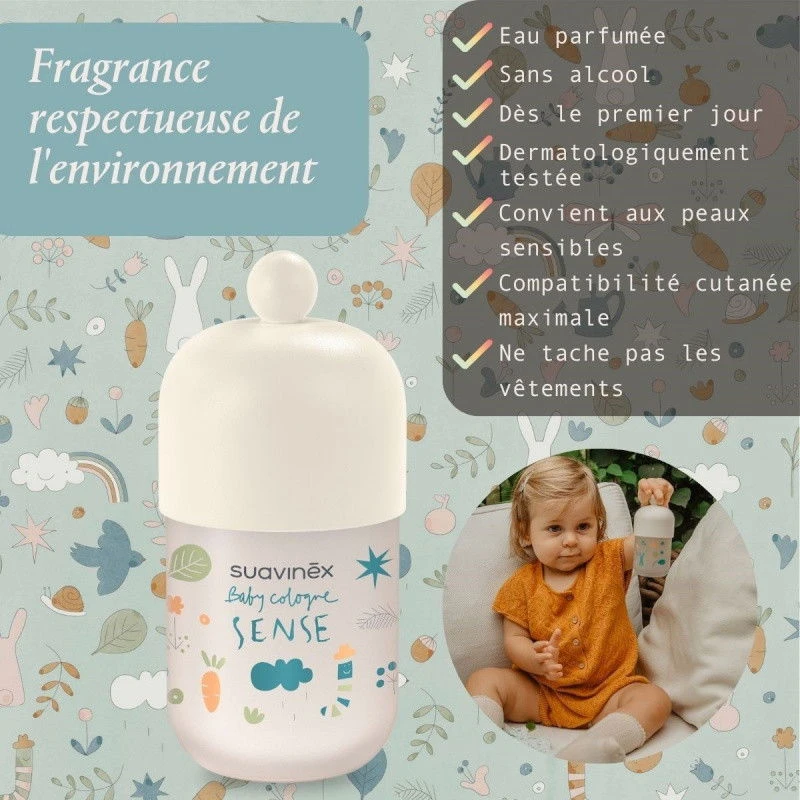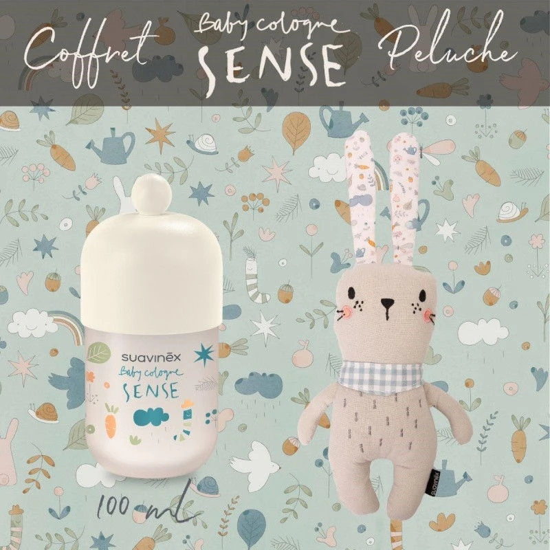 Découvrez l’eau de Cologne Sense par Suavinex, au parfum frais et subtil accompagné d’un adorable petit lapin qui fera le bonheur de bébé et de ses parents !